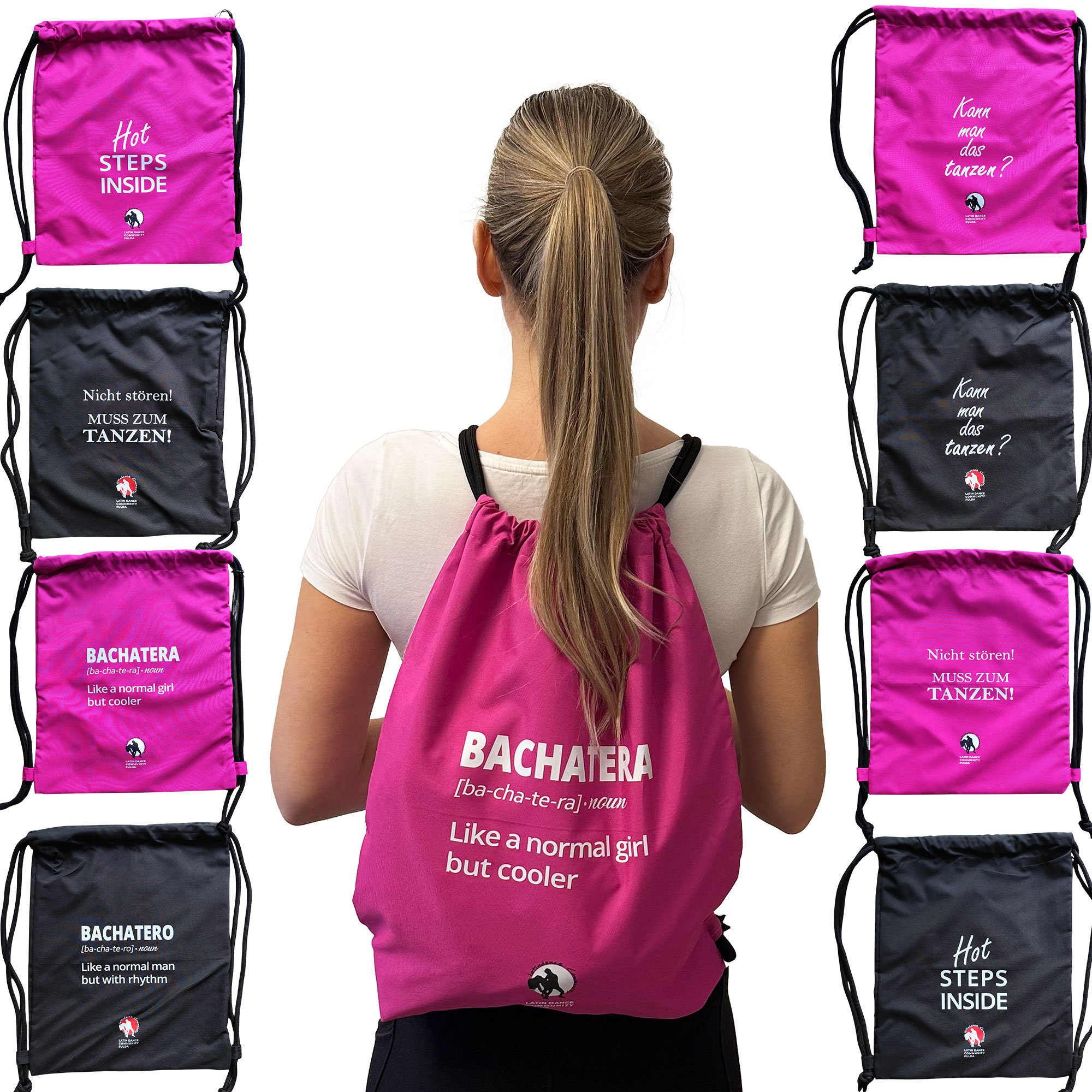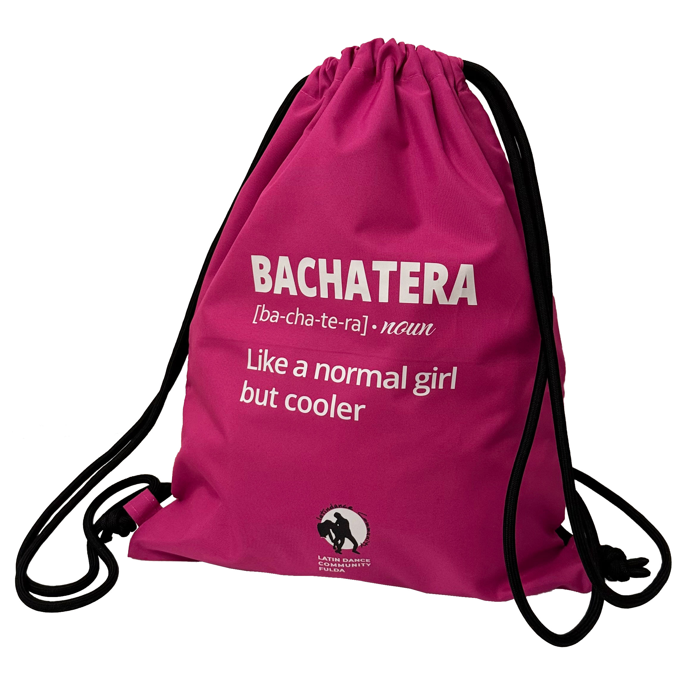 Dieser hochwertige Tanzbeutel (40×48 cm) aus Polyester begleitet dich zu Kursen, Partys und Festivals. Dank wasserabweisendem Material, Reißverschluss-Seitentasche und extra dicken Kordeln trägst du alles bequem wie einen Rucksack – und hast die Hände frei zum Tanzen.