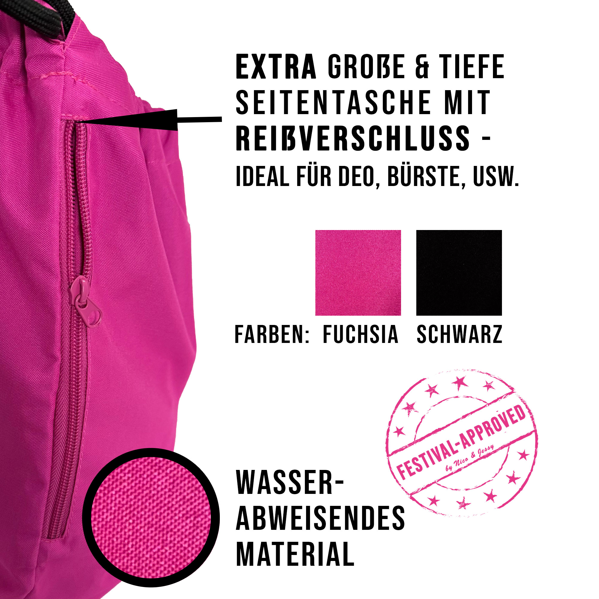 - Separate Seitentasche mit Reißverschluss